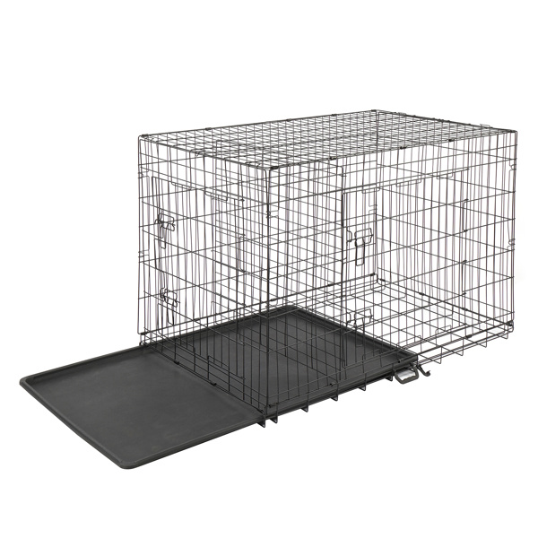 Have you ever noticed your dog always sleeps and relaxes under a table or in a corner? This Pet Cage is the perfect solution to make your pet feel more secure and confident. These premium quality metal pet crates are crafted using commercial-quality materials and superior manufacturing. The crates feature multiple doors that lock easily with a slide-bolt latch, with a durable black electro-coat finish. To set-up, simply unbox and fold open; no tools are required. Each crate features a lightweight, slide-out tray made of durable ABS plastic.