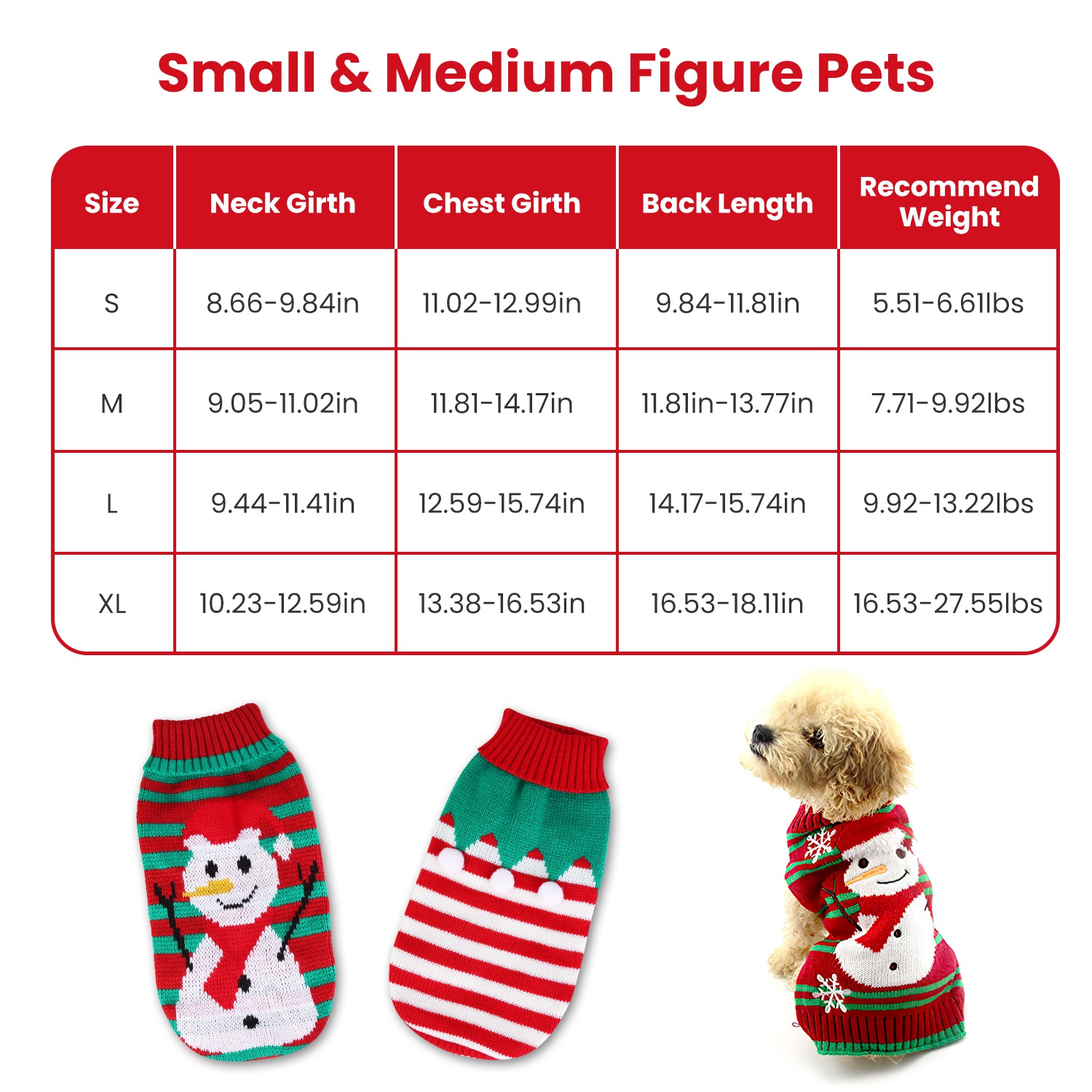Why don’t you let your furry friend get involved in cheerful Christmas atmosphere? Our pet Christmas sweater available in S/M/L/XL sizes, provide detailed neck girth, chest girth, back length and recommend weight data. You can choose the most suitable clothes for your small and medium figures of pets. Designed with stylish and cute patterns on skin-friendly and soft material, making your pet become the most attractive one in party while offering comfortable wearing experience.