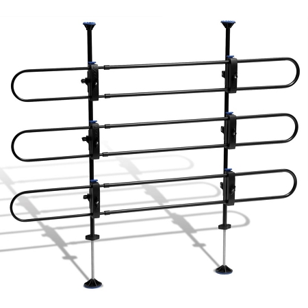 Quick-connect clamps allow easy removal of the horizontal tube sections for quick access to your pet or cargo area. This feature also allows you to uninstall or reinstall the barrier in under one minute. When it’s not in use, the barrier stores safely in the included carrying case. The universal design adjusts from 32" to 49” High and 33" to 57” Wide to fit almost every vehicle, including smaller SUVs and Crossovers. Covered by a Lifetime Warranty.